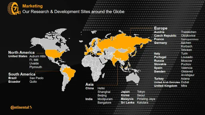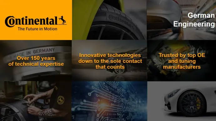 Với hơn 240.000 nhân viên trên toàn thế giới, 59 nhà máy sản xuất và cơ sở nghiên cứu ở 56 quốc gia. Continental cam kết phát triển các công nghệ tiên tiến cho tương lai, hướng đến mục tiêu trở thành nhà cung cấp lốp xe ô tô bền vững nhất thế giới.